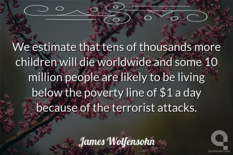 We estimate that tens of thousands more children will die worldwide and some 10 million people are likely to be living below the poverty line of $1 a day because of the terrorist attacks.