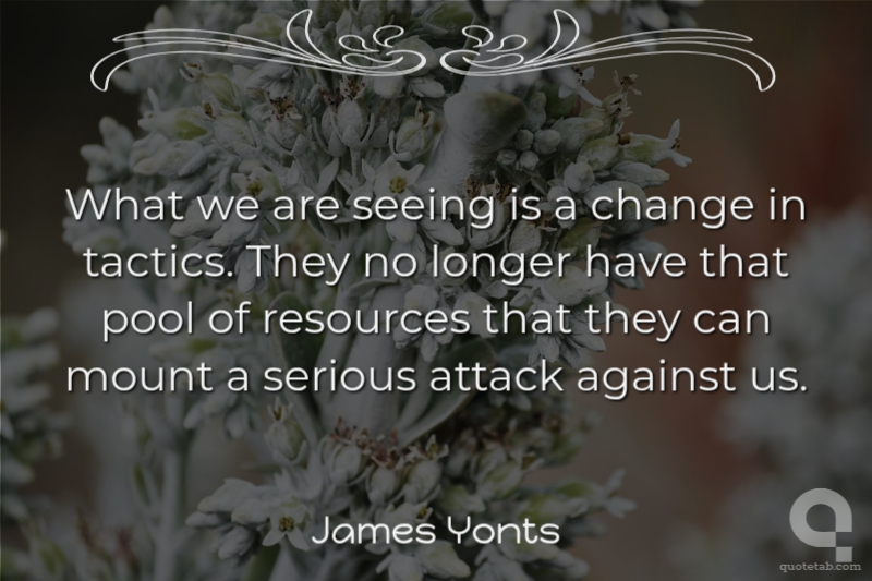 What we are seeing is a change in tactics. They no longer have that pool of resources that they can mount a serious attack against us.