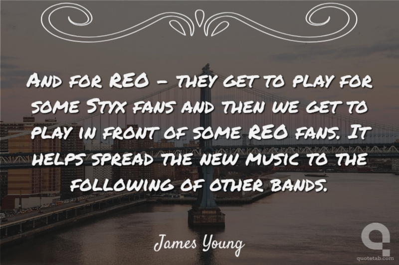 And for REO - they get to play for some Styx fans and then we get to play in front of some REO fans. It helps spread the new music to the following of other bands.