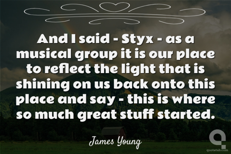 And I said - Styx - as a musical group it is our place to reflect the light that is shining on us back onto this place and say - this is where so much great stuff started.