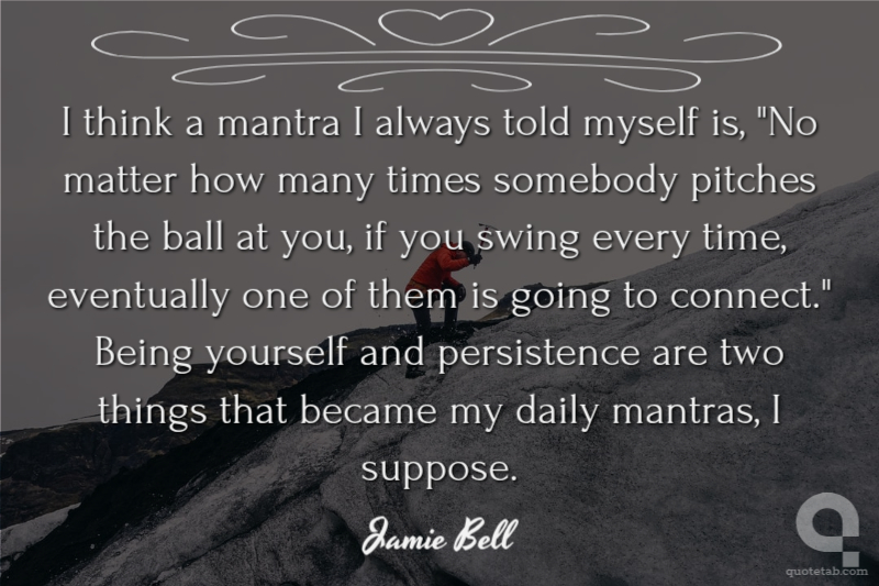 I think a mantra I always told myself is, "No matter how many times somebody pitches the ball at you, if you swing every time, eventually one of them is going to connect." Being yourself and persistence are two things that became my daily mantras, I suppose.