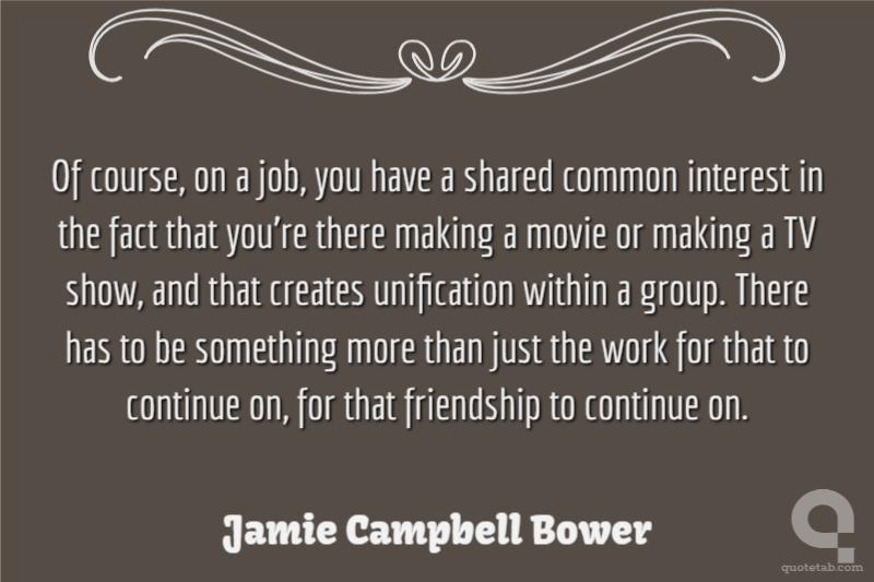 Of course, on a job, you have a shared common interest in the fact that you're there making a movie or making a TV show, and that creates unification within a group. There has to be something more than just the work for that to continue on, for that friendship to continue on.