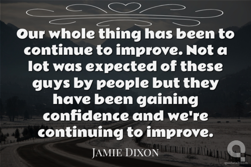 Our whole thing has been to continue to improve. Not a lot was expected of these guys by people but they have been gaining confidence and we're continuing to improve.