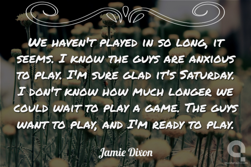 I know the guys are anxious to play. I don't know how much longer we can wait. The guys want to play. I'm ready to play. It's been awhile.