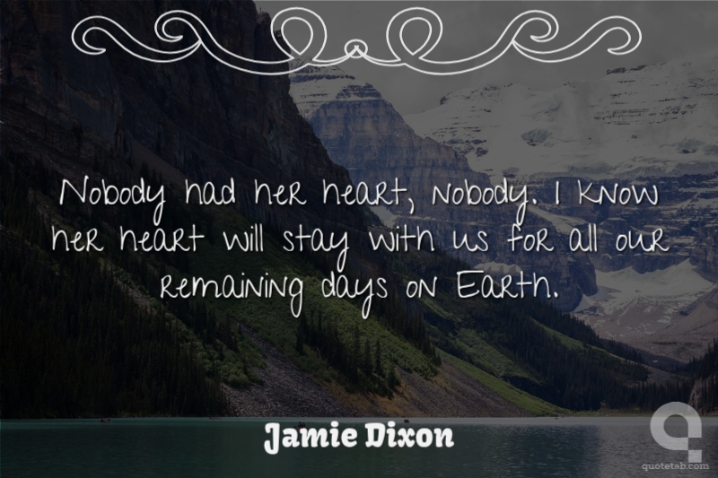 Nobody had her heart, nobody. I know her heart will stay with us for all our remaining days on Earth.