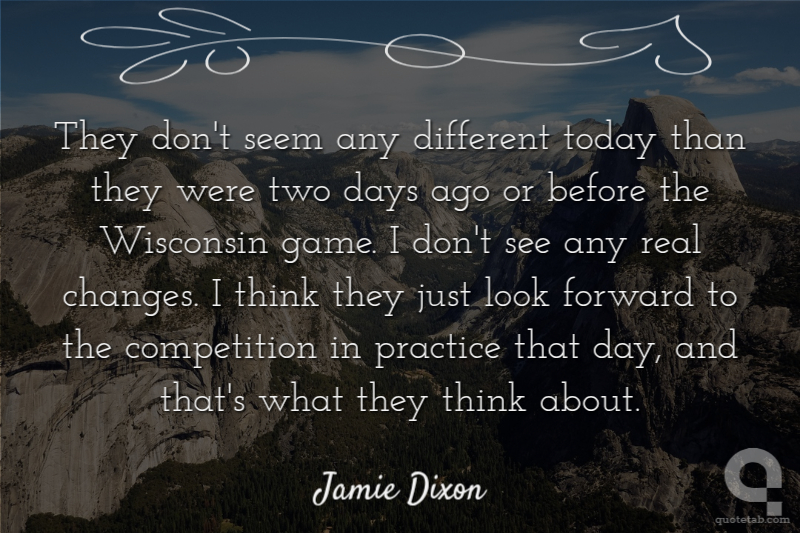 They don't seem any different today than they were two days ago or before the Wisconsin game. I don't see any real changes. I think they just look forward to the competition in practice that day, and that's what they think about.
