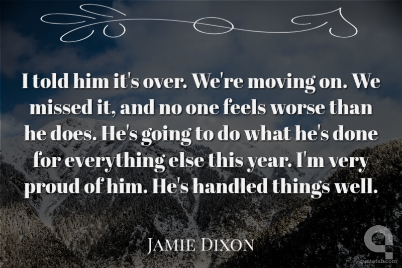 I told him it's over. We're moving on. We missed it, and no one feels worse than he does. He's going to do what he's done for everything else this year. I'm very proud of him. He's handled things well.