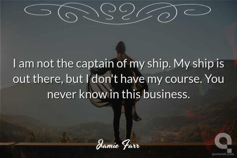 I am not the captain of my ship. My ship is out there, but I don't have my course. You never know in this business.
