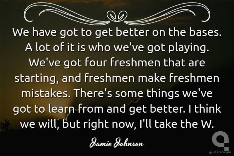 We have got to get better on the bases. A lot of it is who we've got playing. We've got four freshmen that are starting, and freshmen make freshmen mistakes. There's some things we've got to learn from and get better. I think we will, but right now, I'll take the W.