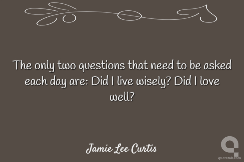 The only two questions that need to be asked each day are: Did I live wisely? Did I love well?