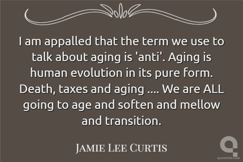 I am appalled that the term we use to talk about aging is 'anti'. Aging is human evolution in its pure form. Death, taxes and aging .... We are ALL going to age and soften and mellow and transition.