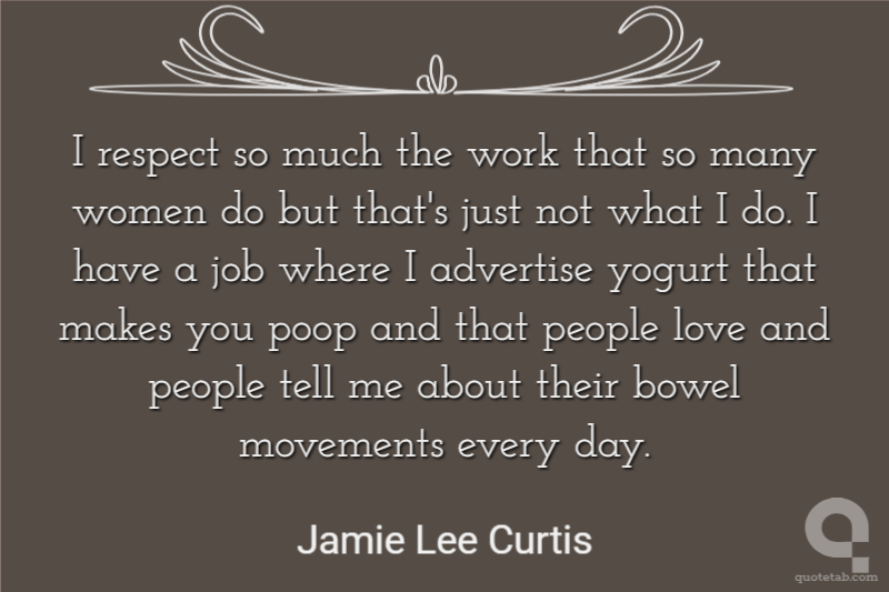I respect so much the work that so many women do but that's just not what I do. I have a job where I advertise yogurt that makes you poop and that people love and people tell me about their bowel movements every day.