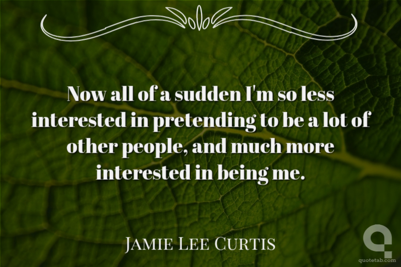 Now all of a sudden I'm so less interested in pretending to be a lot of other people, and much more interested in being me.
