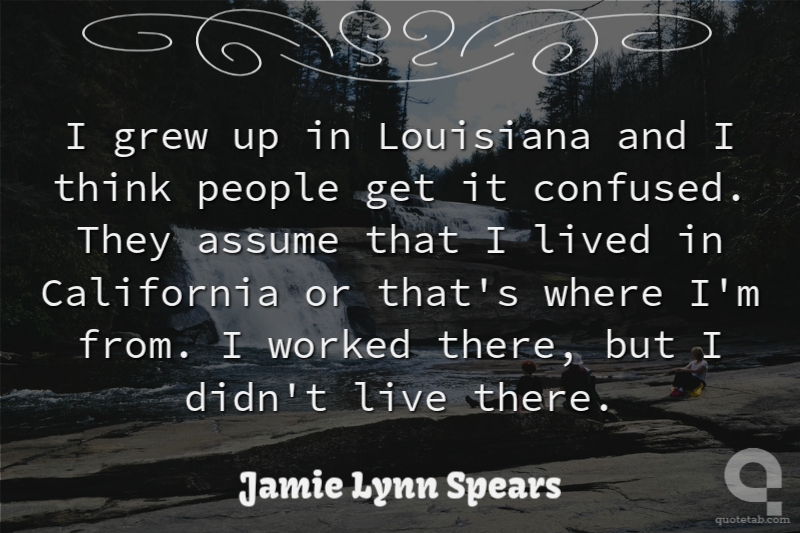 I grew up in Louisiana and I think people get it confused. They assume that I lived in California or that's where I'm from. I worked there, but I didn't live there.