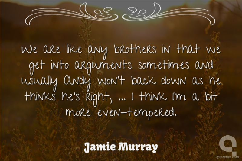 We are like any brothers in that we get into arguments sometimes and usually Andy won't back down as he thinks he's right, ... I think I'm a bit more even-tempered.