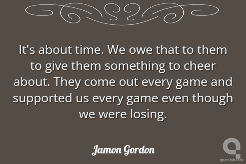 It's about time. We owe that to them to give them something to cheer about. They come out every game and supported us every game even though we were losing.