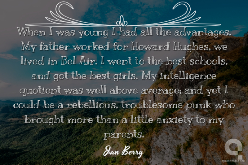 When I was young I had all the advantages. My father worked for Howard Hughes, we lived in Bel Air. I went to the best schools, and got the best girls. My intelligence quotient was well above average; and yet I could be a rebellious, troublesome punk who brought more than a little anxiety to my parents.