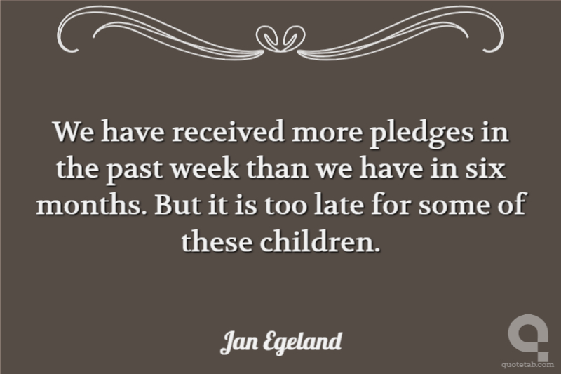 We have received more pledges in the past week than we have in six months. But it is too late for some of these children.