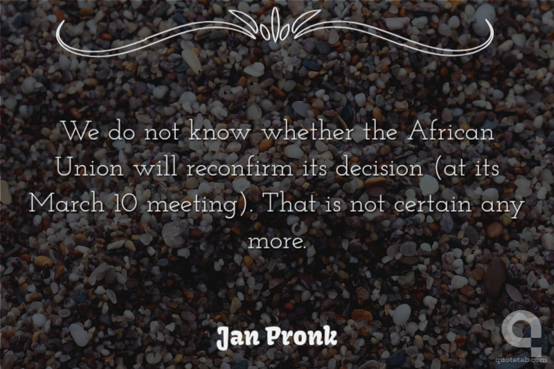We do not know whether the African Union next Friday will reconfirm its own decision. That is not certain any more.