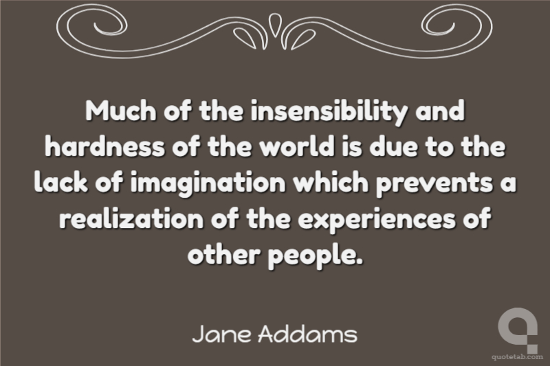 Much of the insensibility and hardness of the world is due to the lack of imagination which prevents a realization of the experiences of other people.
