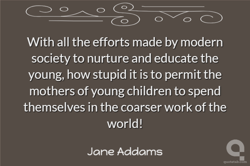 With all the efforts made by modern society to nurture and educate the young, how stupid it is to permit the mothers of young children to spend themselves in the coarser work of the world!
