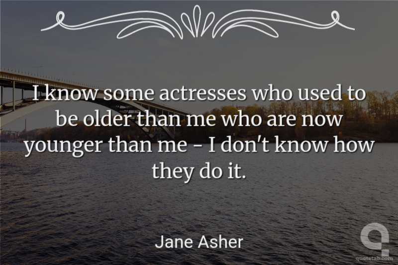 I know some actresses who used to be older than me who are now younger than me - I don't know how they do it.