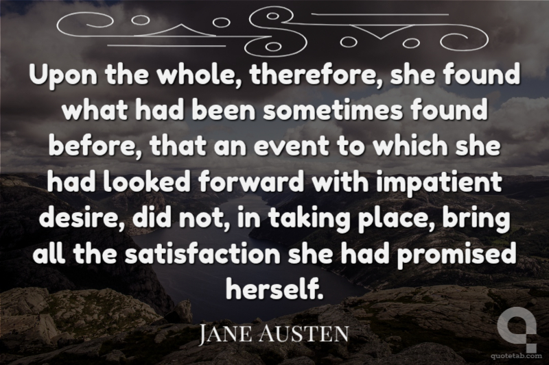 Upon the whole, therefore, she found what had been sometimes found before, that an event to which she had looked forward with impatient desire, did not, in taking place, bring all the satisfaction she had promised herself.