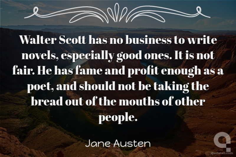 Walter Scott has no business to write novels, especially good ones. It is not fair. He has fame and profit enough as a poet, and should not be taking the bread out of the mouths of other people.