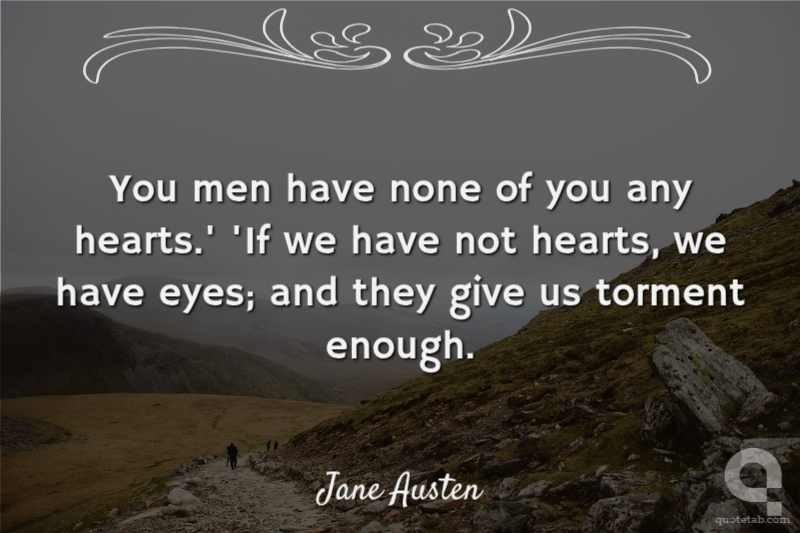 You men have none of you any hearts.' 'If we have not hearts, we have eyes; and they give us torment enough.