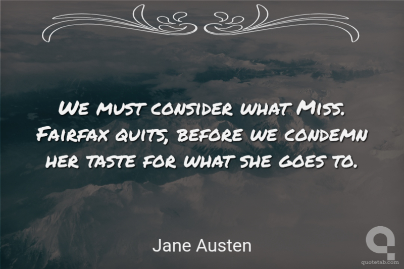 We must consider what Miss. Fairfax quits, before we condemn her taste for what she goes to.