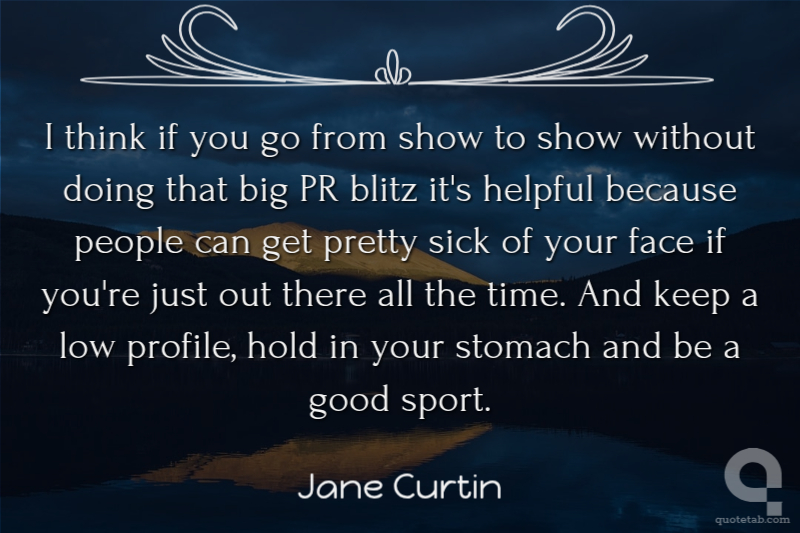 I think if you go from show to show without doing that big PR blitz its helpful because people can get pretty sick of your face if youre just out there all the time. And keep a low profile, hold in your stomach and be a good sport.
