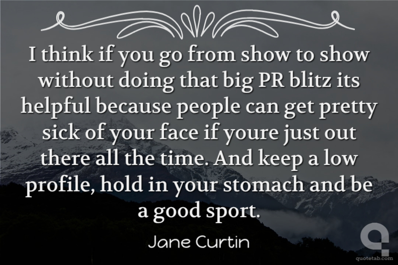 I think if you go from show to show without doing that big PR blitz its helpful because people can get pretty sick of your face if youre just out there all the time. And keep a low profile, hold in your stomach and be a good sport.
