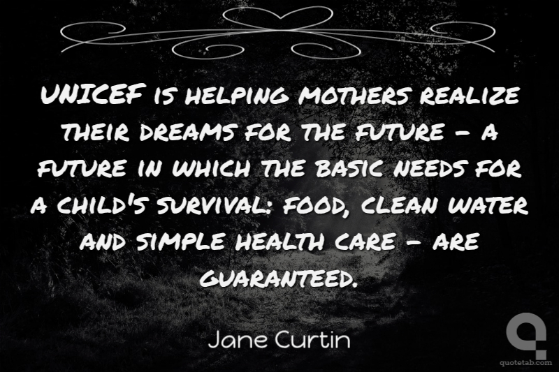 UNICEF is helping mothers realize their dreams for the future - a future in which the basic needs for a child's survival: food, clean water and simple health care - are guaranteed.