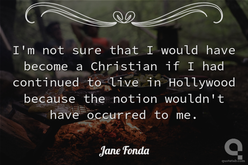 I'm not sure that I would have become a Christian if I had continued to live in Hollywood because the notion wouldn't have occurred to me.