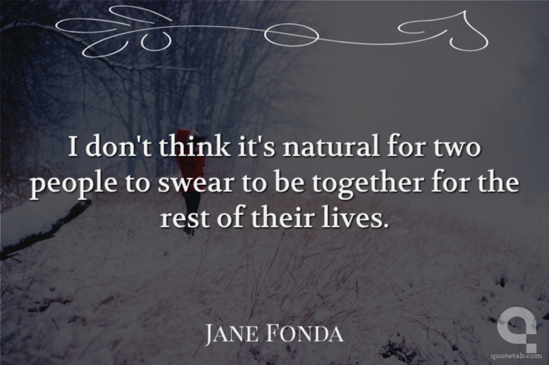 I don't think it's natural for two people to swear to be together for the rest of their lives.