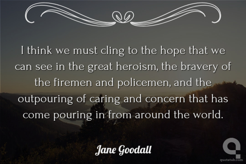 I think we must cling to the hope that we can see in the great heroism, the bravery of the firemen and policemen, and the outpouring of caring and concern that has come pouring in from around the world.