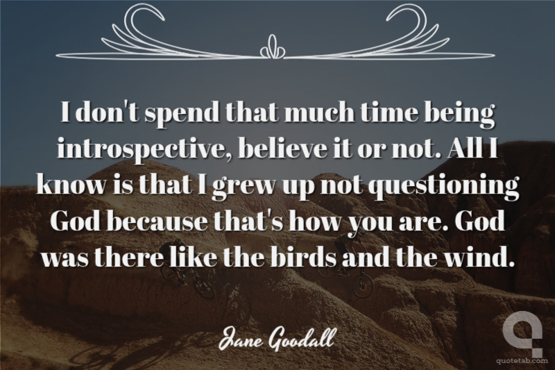 I don't spend that much time being introspective, believe it or not. All I know is that I grew up not questioning God because that's how you are. God was there like the birds and the wind.