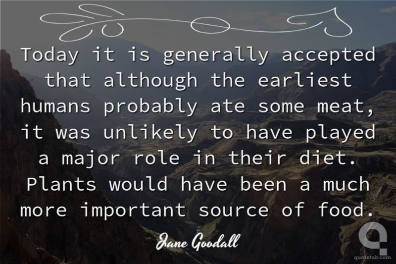 Today it is generally accepted that although the earliest humans probably ate some meat, it was unlikely to have played a major role in their diet. Plants would have been a much more important source of food.