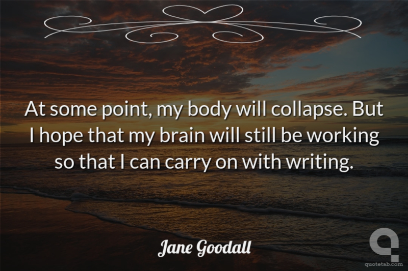 At some point, my body will collapse. But I hope that my brain will still be working so that I can carry on with writing.