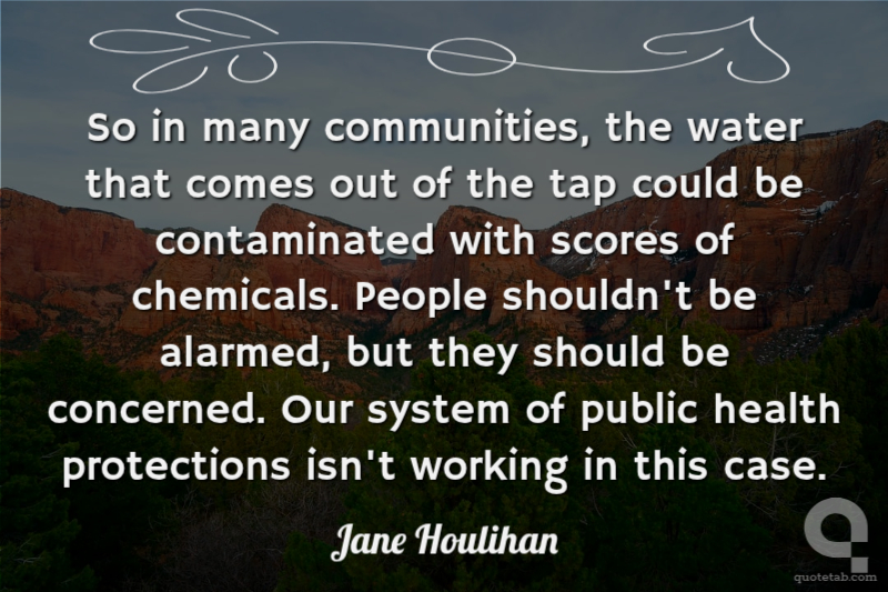 So in many communities, the water that comes out of the tap could be contaminated with scores of chemicals. People shouldn't be alarmed, but they should be concerned. Our system of public health protections isn't working in this case.
