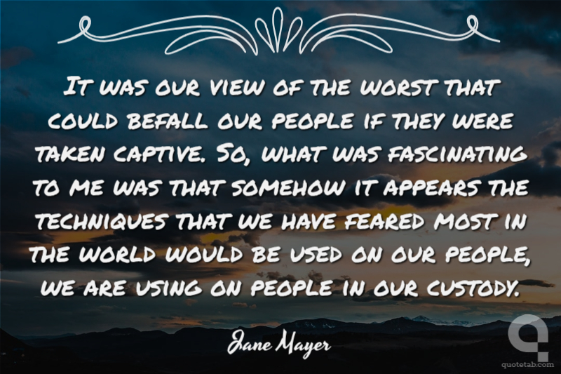 It was our view of the worst that could befall our people if they were taken captive. So, what was fascinating to me was that somehow it appears the techniques that we have feared most in the world would be used on our people, we are using on people in our custody.