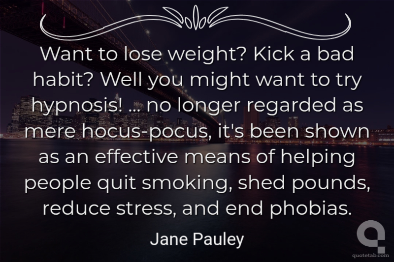 Want to lose weight? Kick a bad habit? Well you might want to try hypnosis! ... no longer regarded as mere hocus-pocus, it's been shown as an effective means of helping people quit smoking, shed pounds, reduce stress, and end phobias.