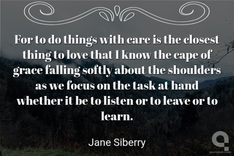 For to do things with care is the closest thing to love that I know the cape of grace falling softly about the shoulders as we focus on the task at hand whether it be to listen or to leave or to learn.