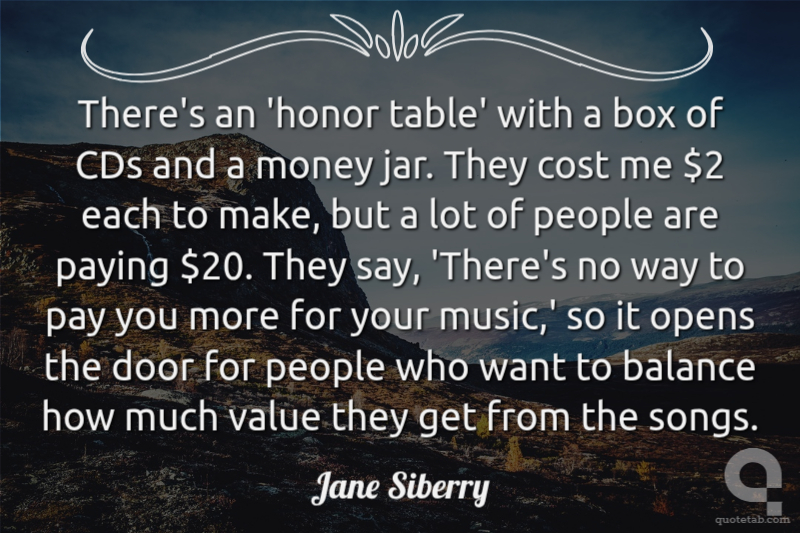 There's an 'honor table' with a box of CDs and a money jar. They cost me $2 each to make, but a lot of people are paying $20. They say, 'There's no way to pay you more for your music,' so it opens the door for people who want to balance how much value they get from the songs.