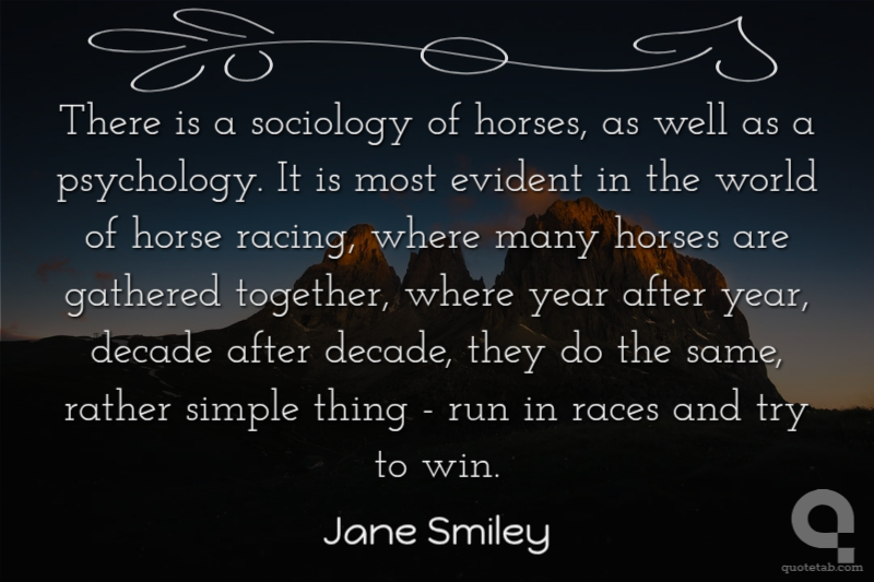 There is a sociology of horses, as well as a psychology. It is most evident in the world of horse racing, where many horses are gathered together, where year after year, decade after decade, they do the same, rather simple thing - run in races and try to win.