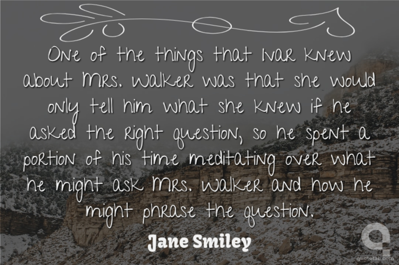 One of the things that Ivar knew about Mrs. Walker was that she would only tell him what she knew if he asked the right question, so he spent a portion of his time meditating over what he might ask Mrs. Walker and how he might phrase the question.