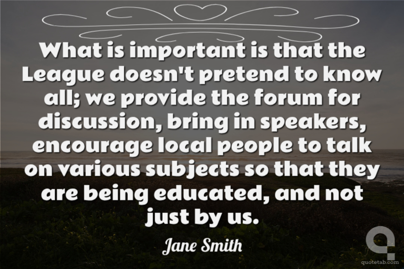 What is important is that the League doesn't pretend to know all; we provide the forum for discussion, bring in speakers, encourage local people to talk on various subjects so that they are being educated, and not just by us.