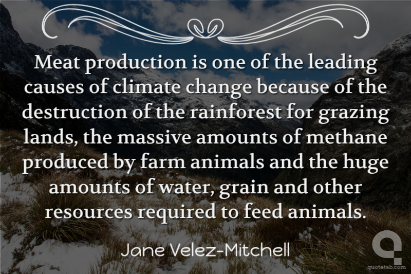 Meat production is one of the leading causes of climate change because of the destruction of the rainforest for grazing lands, the massive amounts of methane produced by farm animals and the huge amounts of water, grain and other resources required to feed animals.