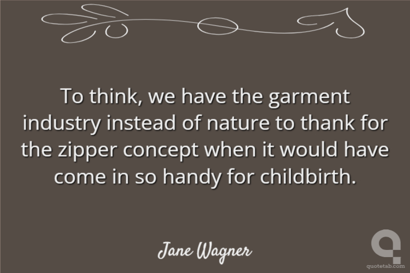 To think, we have the garment industry instead of nature to thank for the zipper concept when it would have come in so handy for childbirth.