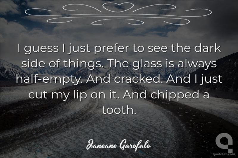 I guess I just prefer to see the dark side of things. The glass is always half-empty. And cracked. And I just cut my lip on it. And chipped a tooth.